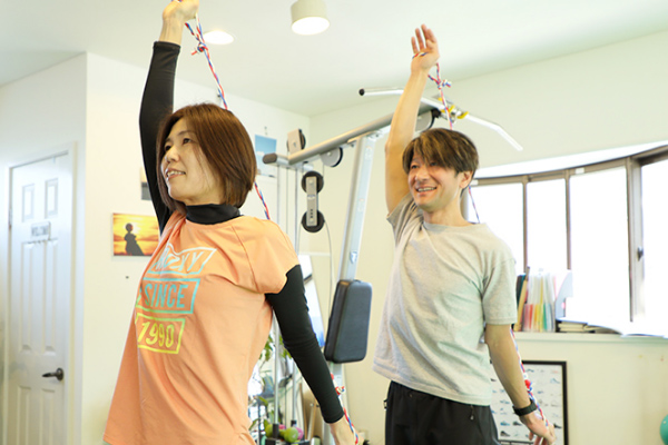 当ジムでは40~60 代の人を中心に、正しい体の動かし方の知識=体の取り扱い説明書をわかりやすくお伝えしながら、姿勢、筋力、柔軟性、バランス能力が同時に手に入る張力フレックストレーニング®をご提案しています。